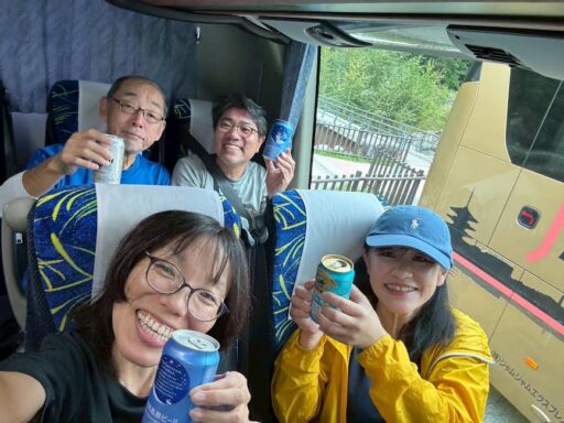 最終日の雨風は予定通りです。夜中の11時ごろに雨と風が山荘を打ち付ける、0時ごとに一旦風がおさまるが、2時ごろはまた騒がしくなる。4時30分出発のために、3時30分起床し、昨日のラッシュガード下を登山服の代わりとし、ぬれても快適にバスに乗ために、登山ズボンはビニール袋に入れて温存する。O田さんとS藤さんは靴を温存するために、沢靴で下山するとのこと。全ては下山後に風呂に行き、きれいな体(I原さんの言葉を引用)と乾燥した服を着用し、帰りのバスの中で冷たいビールを飲むために。案の定、登山道は雨水の川、滝となって、昨日の高瀬川渡渉の再現の中で、靴の中は水びたし、強風にふらつきながら、双六山荘へ向かう。O田さんをかなり速度を上げるが、時間の短縮はままならず。雨のなか双六山荘の軒下で朝飯を、鏡平山荘では穂高の山肌をみながら、軽い昼食をとって、お風呂だ、ビールだと騒ぎながら、無事にわさび平小屋へ。ここからの山道がまた長く、やっと新穂高温泉バス停に12時30分に着した。バスは14;00発なので、ゆっくり温泉できれいな体(再びI原さんの言葉を引用)になって、バスに乗り込む準備として、ロープウェイ下駅構内で飛騨牛のコロッケと冷たいビールを買って、無事新穂高雄山バス停を出発し帰路についた。楽しい山旅でした。