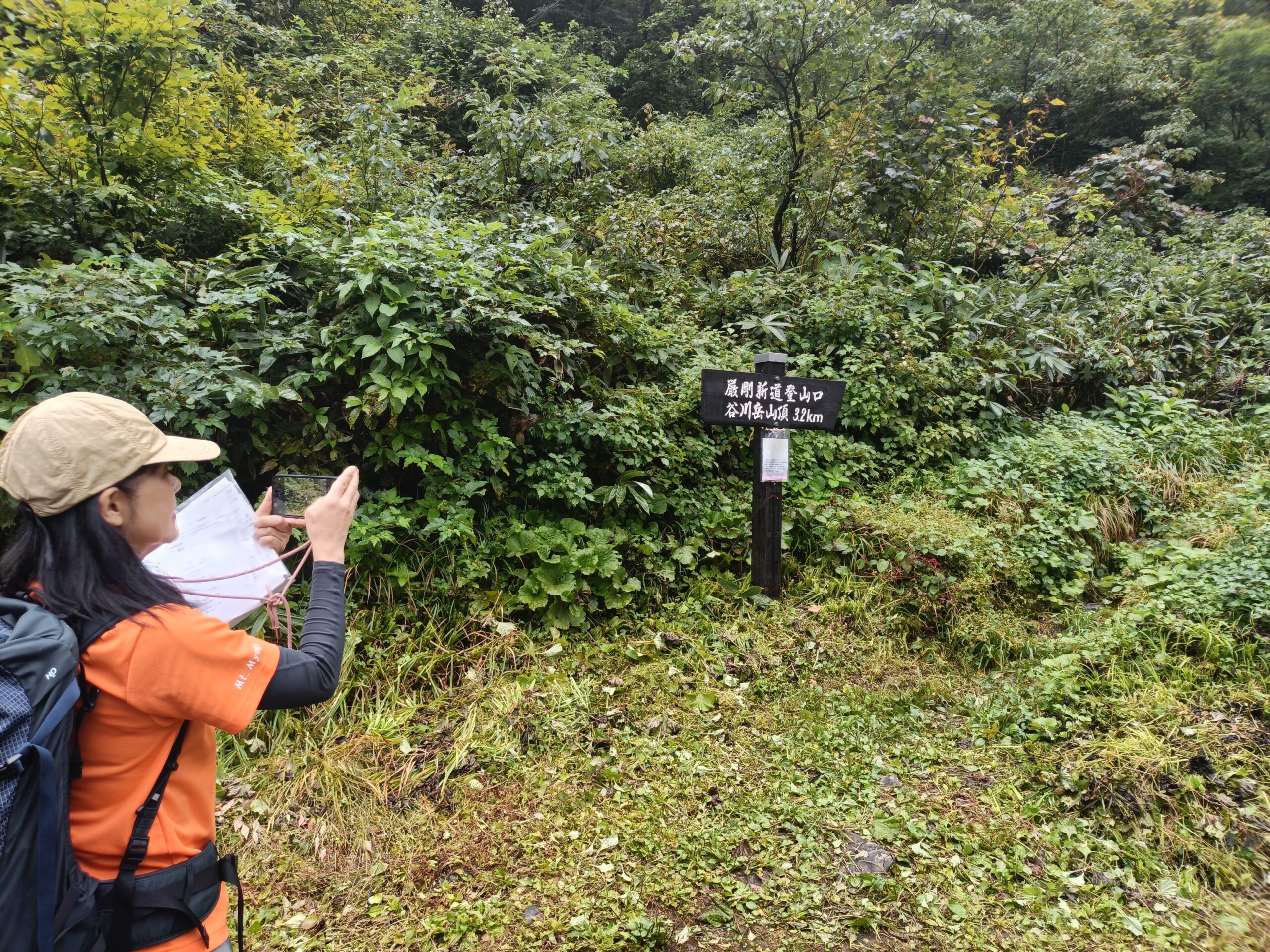 マチガ沢出合いの「巌剛新道登山口」に到着。今日はここから登ります。