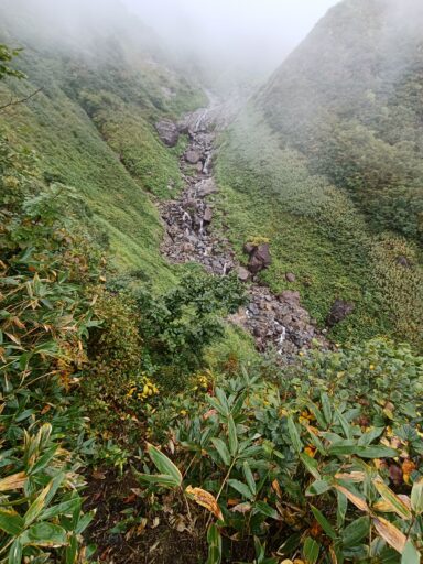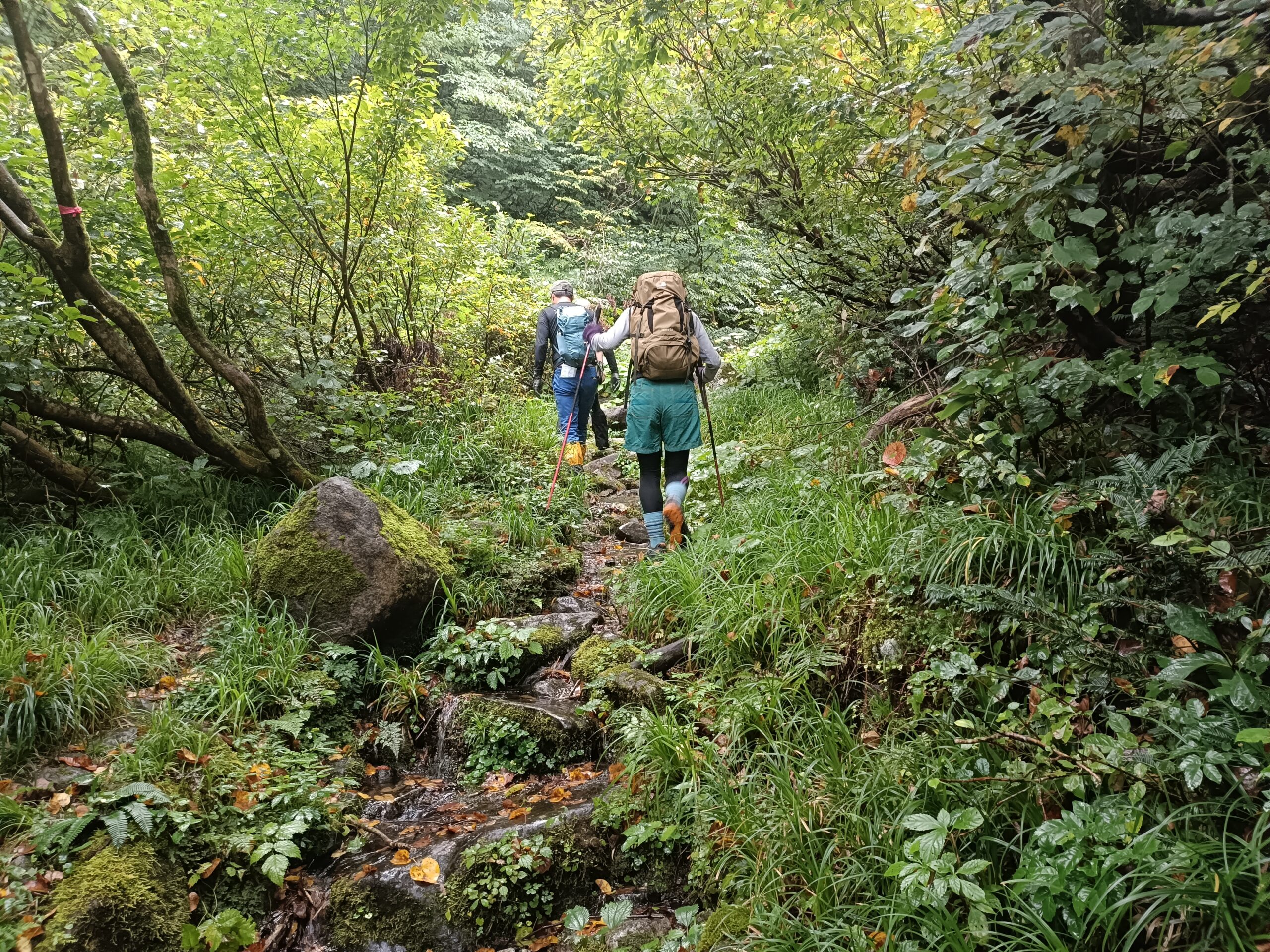 雨が降って沢が増水したせいか、登山道にも水が流れ込んできていて、ところどころ沢のようになっていました。