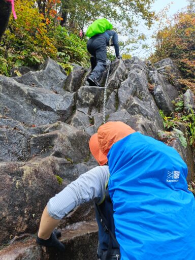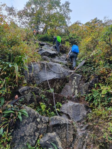 巌剛新道の後半は鎖場もあってよじ登り、一気に高度を上げていきます。