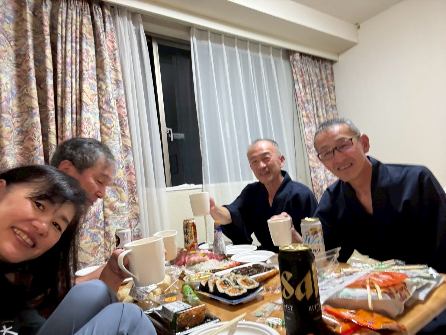 下山後、長野インター近くのホテルの部屋で打ち上げ! 10/11 松戸に帰りました。