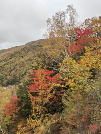 おっさんでも紅葉の美しさには歓声を上げる。ただ「おおう!」「ぐわっ!」となどその発声は美しいわけではない。そして予報が良いはずの天気は徐々に下り坂、そして雨。
