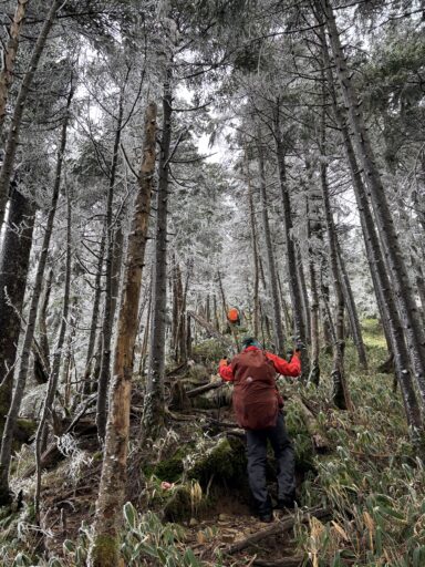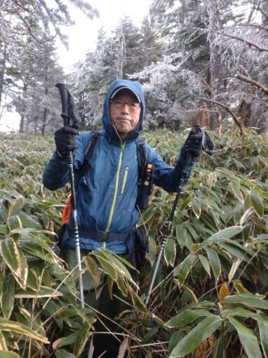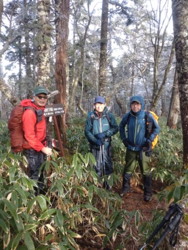 おっさん達は無言で進む。途中の白ビソ山にて。