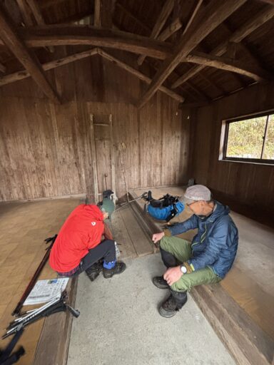 この小屋にに珍しく登山者で満杯になる。みなおっさん達である。