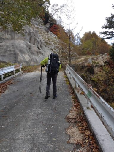 そして昨晩お世話になった小屋まで戻ってきた。ここで再びパッキングしてさらに林道を歩く。