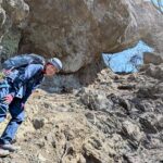 懸垂ポイントのあとは、石が脆いザレ場を慎重に登り詰めます