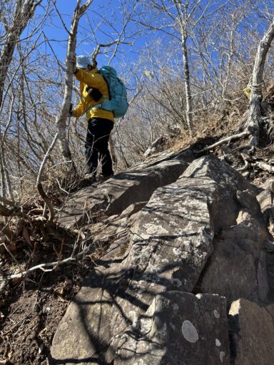 分岐に到着。ここを右に曲がり、岩場の急登が始まります。
