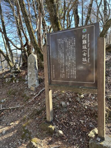 女坂峠は「阿難坂(あなんざか)」とも呼ばれ、かつて甲斐と駿河を結ぶ重要な街道「中道往還」の一部でした。歴史を感じさせる古道であり、道中には石仏や石積みの跡など、往時の面影が残っています。