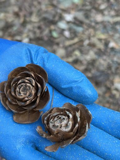 これは、バラの花?いやいや「ヒマラヤスギ」の松ぼっくり。可愛いですね。