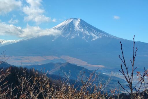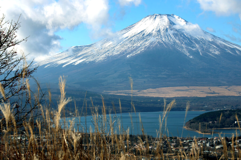 ちょっと雪の少ない富士山を引き立てる 麓の山中湖