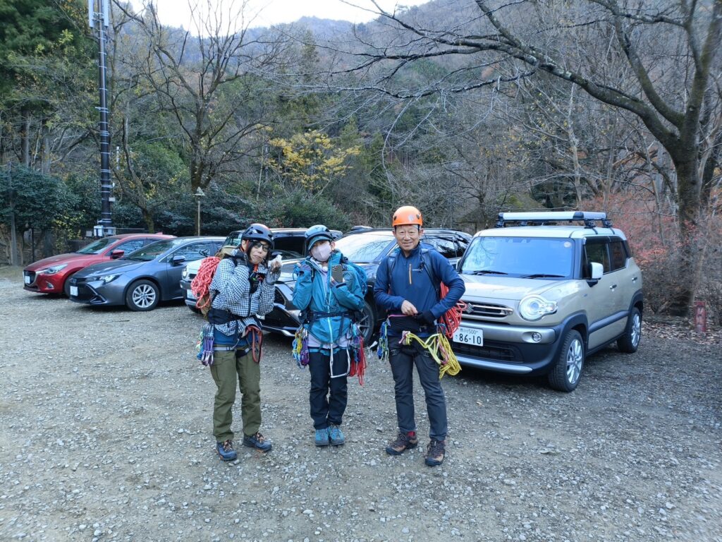 旧国民宿舎裏妙義駐車場8:00-丁頭の頭登山口8:15-木戸壁右カンテ取り付け8:50-登攀開始9:15-木戸壁右カンテ終了12:35-旧国民宿舎裏妙義駐車場15:30