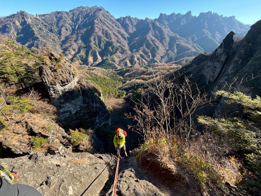 O田っちが、ロープを束ねて脇に抱えて先に降ります