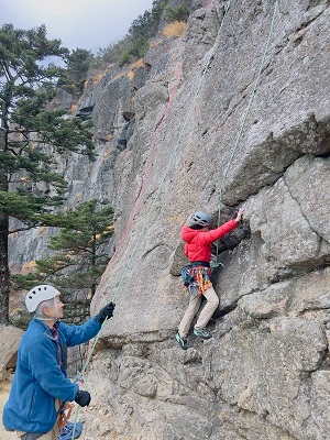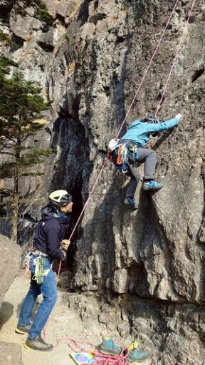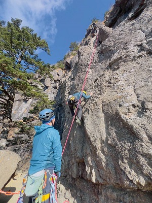 ロープを張ってもらい安全に、楽しく岩を楽しめました