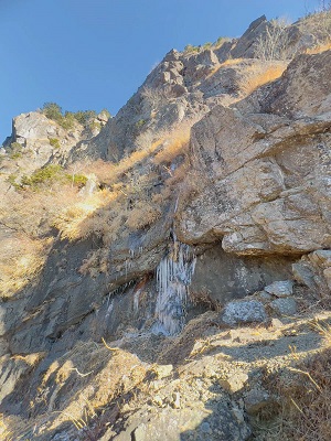 寒いです、岩にツララが。。。指先が寒くてしびれそう