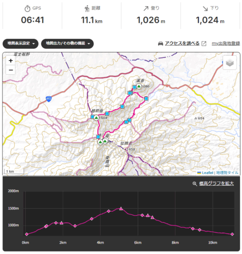 【行程】8:44愛鷹山黒岳登山口駐車場-9:26愛鷹山荘-9:58黒岳-10:57鋸岳展望台-12:01越前岳(愛鷹山)-13:32呼子岳-14:52大沢橋-15:36愛鷹山黒岳登山口駐車場