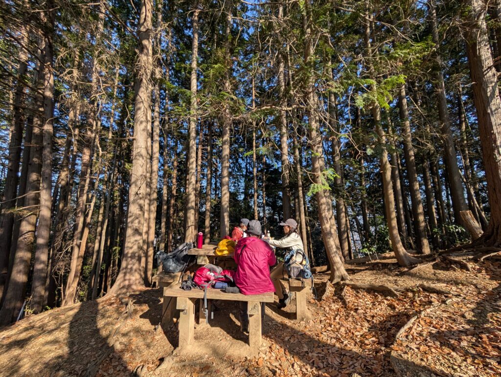 富士見台で昼食。木々の間から差し込む木漏れ日が心地よい。