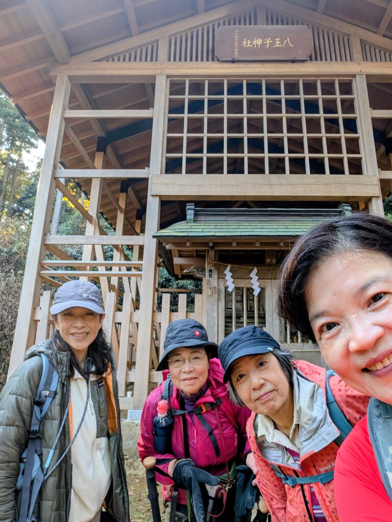 八王子神社前。記念の自撮り