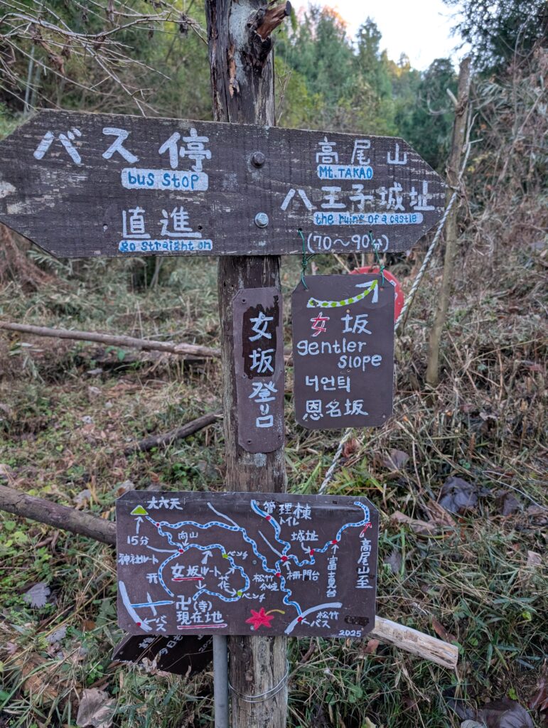 八王子神社以降は、手作りの案内標識が多く見られ、英語・韓国語・中国語の表記も添えられていました。そこでふと、「ここは東京なのだ」と実感させられます。