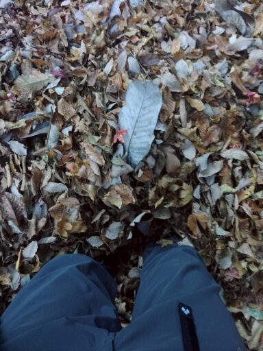 陽だまりの落ち葉の上はふかふかで快適!カップラーメン頂きました🍙