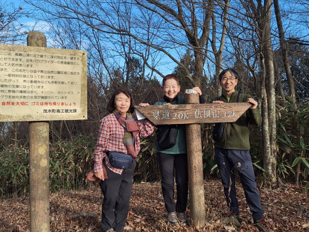 栃木百名山を目指しているS井リーダーの低山ハイクに参加させていただきました。車で高速道路を移動中は厚い雲に覆われて天候がとても心配でしたが、晴れ女パワーに助けられて心地よく陽だまり山行をすることができました。下山してから雨が降り出したのにはビックリしました。さすがのパワーです。