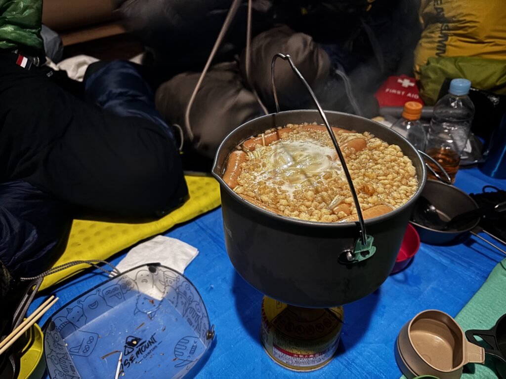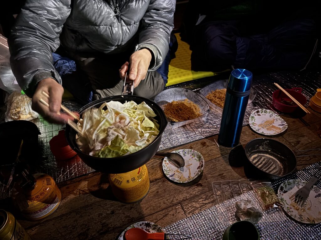 パリパリあんかけ焼きそばの夕飯。シンコちゃんが小屋の夕飯のグレード上げてくる。ここはほんとに山の中なのだろうか
