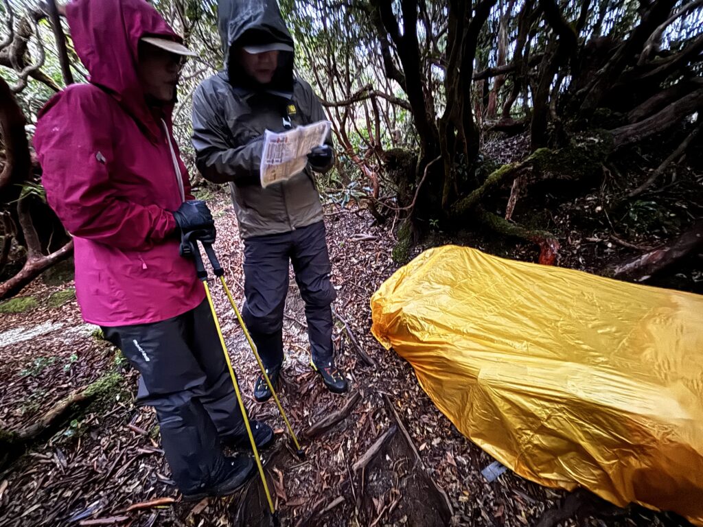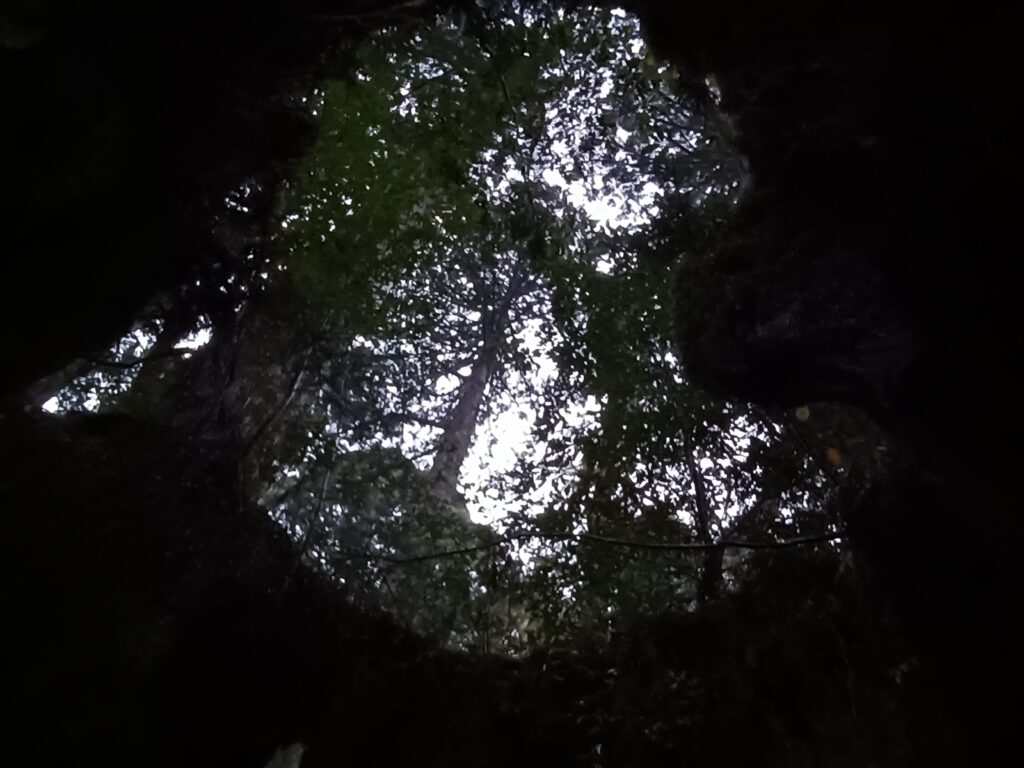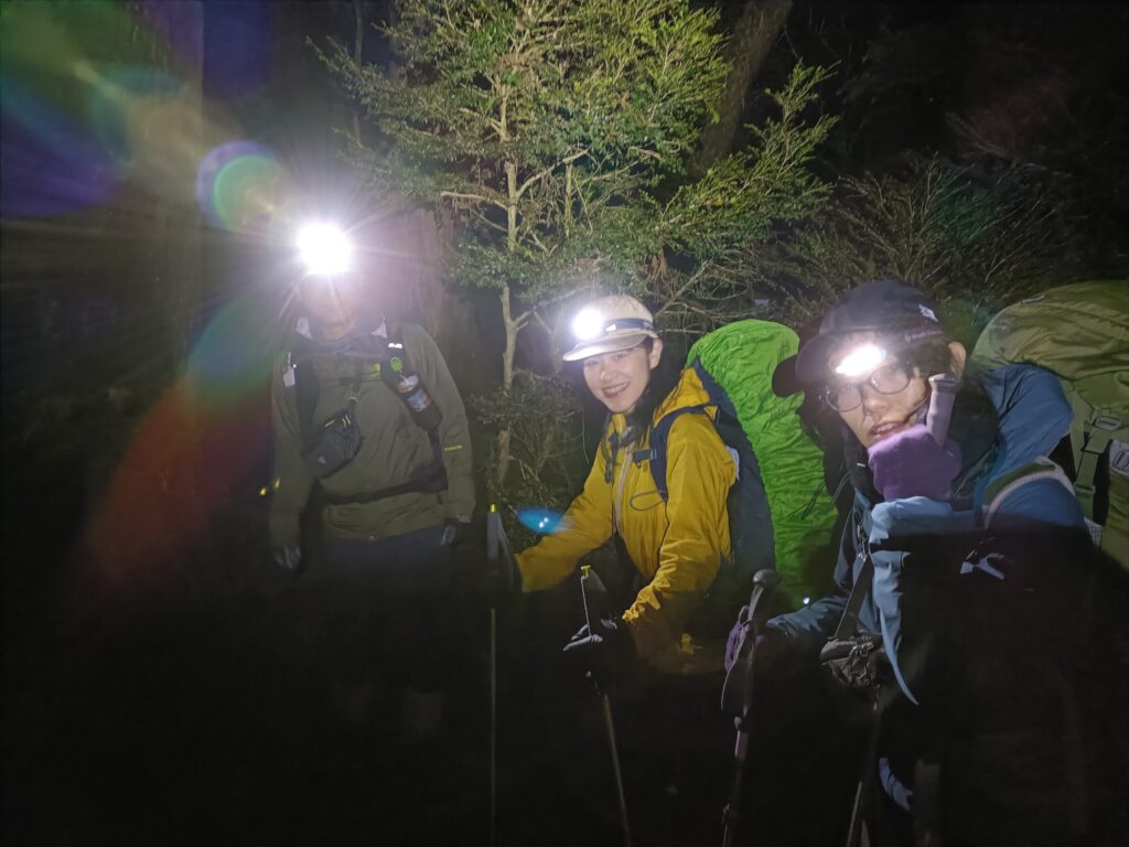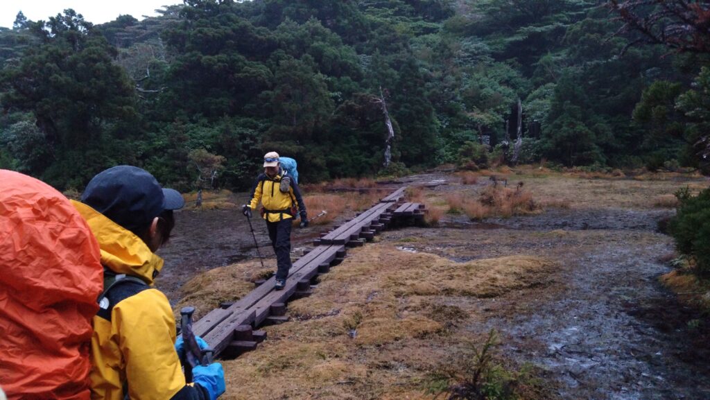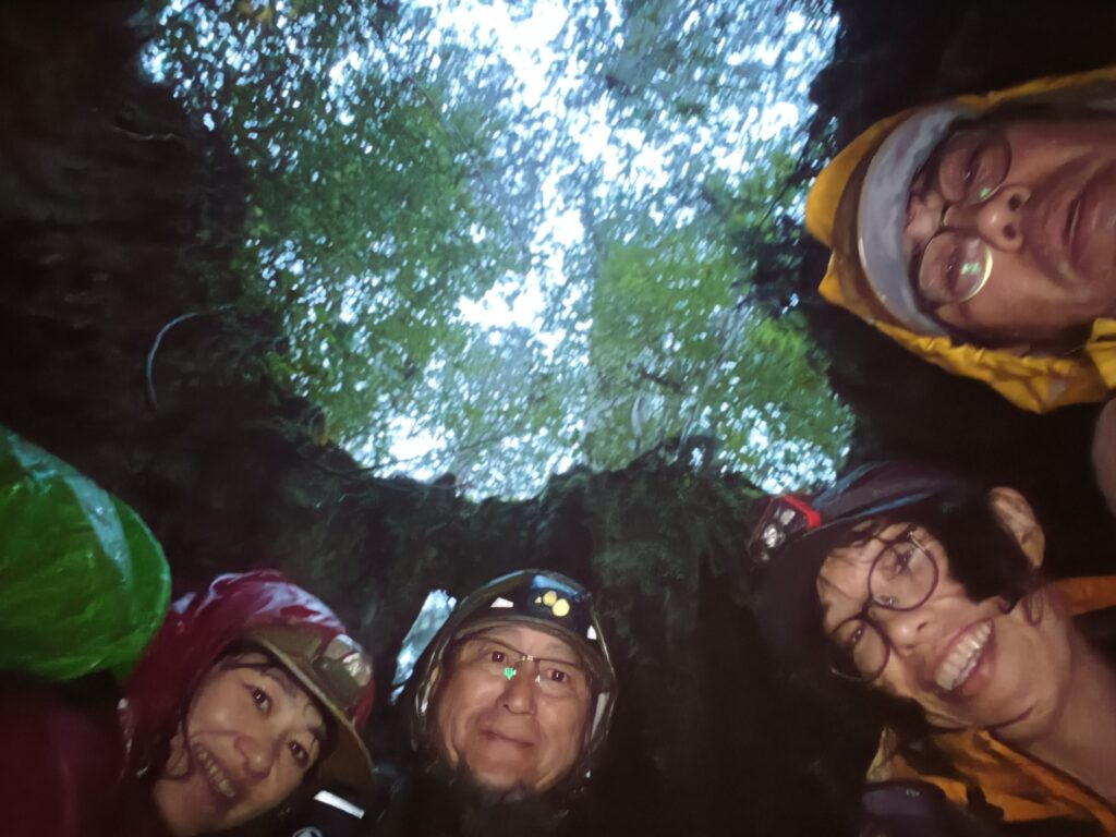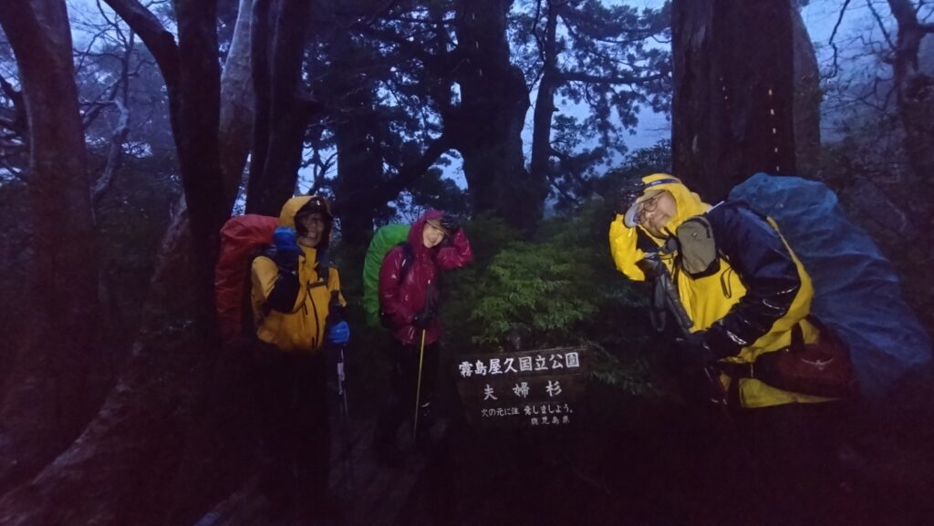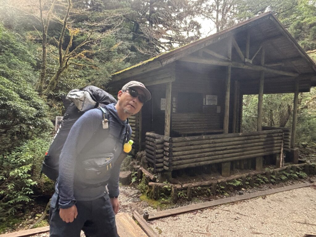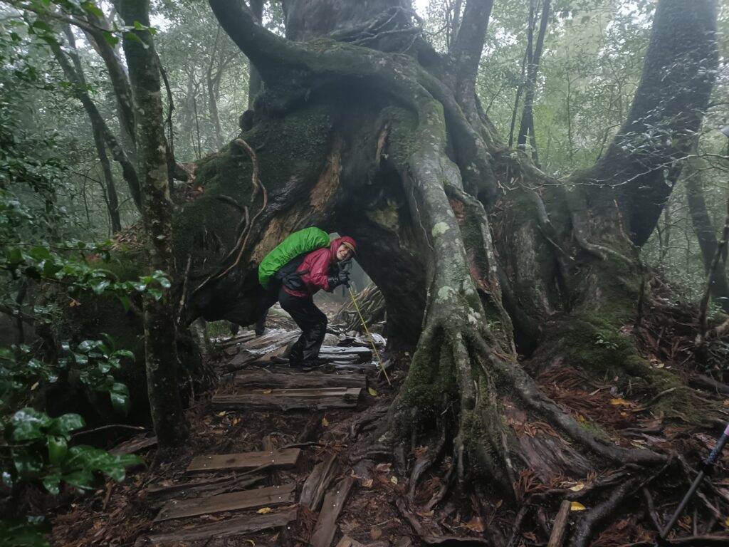 朝起きても雨あしは強く、再び濡れた服とカッパを着て外に出ることに絶望(今回の山行で小屋を出る時が一番の難所でした)楽しみにしていた大王杉は真っ暗でよく見えず、雨でゆっくり見ることもできず通過