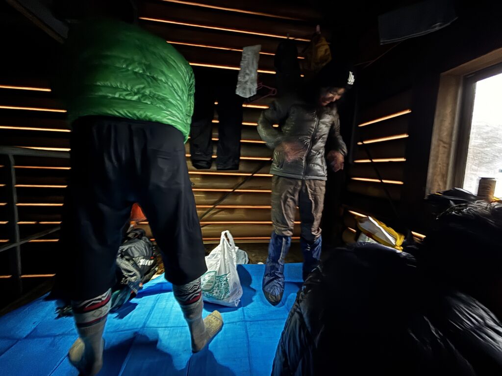 3階建ての小さな小屋で、1人だけトルコ人の男性が泊まっていましたが、あとは私たちのグループだけでした。もう全身ずぶぬれで寒いので、必死に乾いた服に着替える。雨がひどくて外トイレに行くのもためらうほどでした