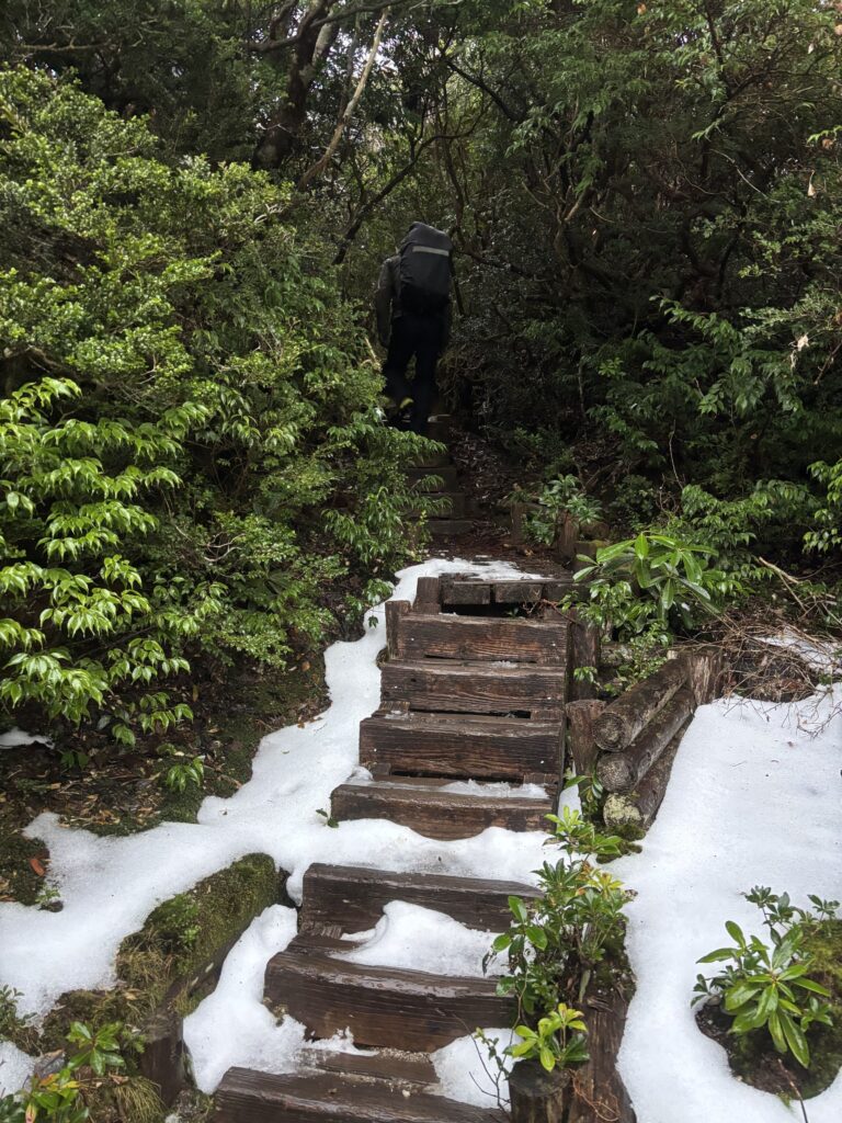 いよいよ宮之浦岳を目指しますが、ちらほら雪も出てきました。でもツボ足で問題なし