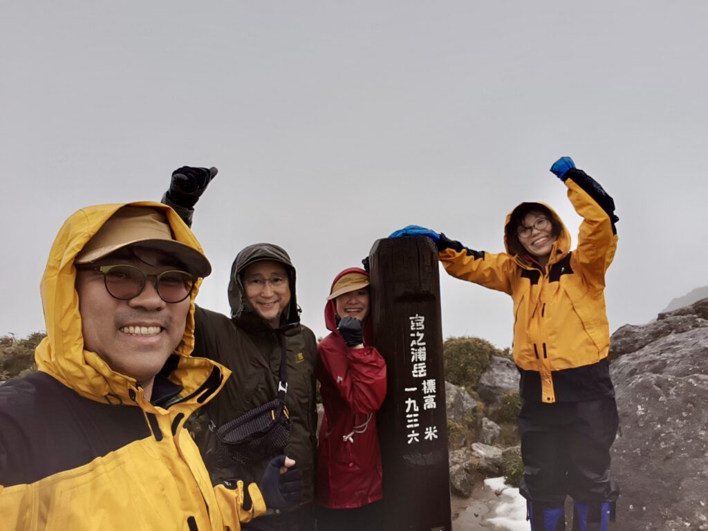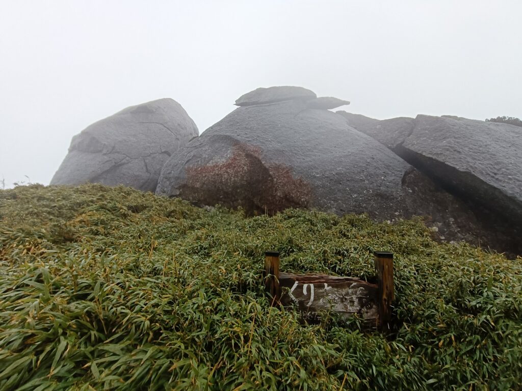 念願の宮之浦岳に到着。この頃には服もザックも水没気味。さっさと避難小屋を目指すことに