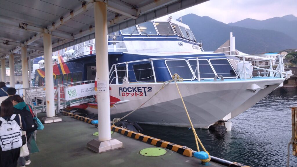 白谷広場(タクシー)=宮之浦港13:00/15:00(トッピー)=鹿児島サンロイヤルホテル18:00(泊)