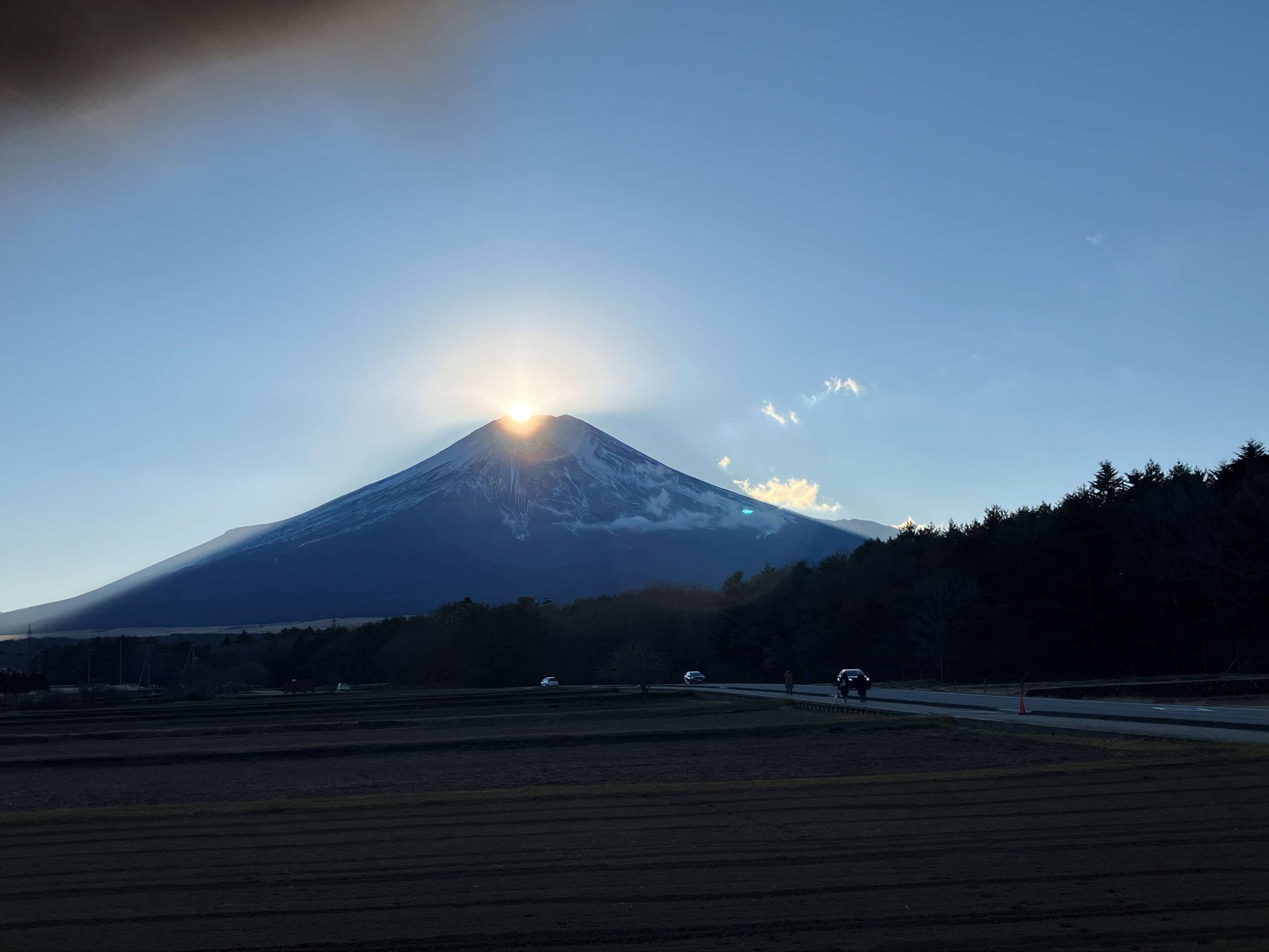 下山後は、石割の湯で温まり、蕎麦屋で聞いたダイヤモンド富士のカメラスポットへ。