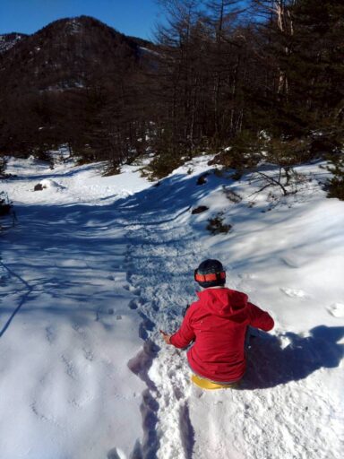 HR井さん、持参の尻セード用そりを試します!