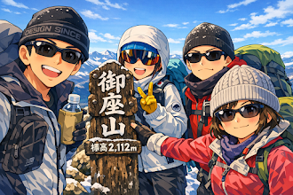 やったね!雪山の御座山を4人で登れたね!おめでとう、そしてありがとう