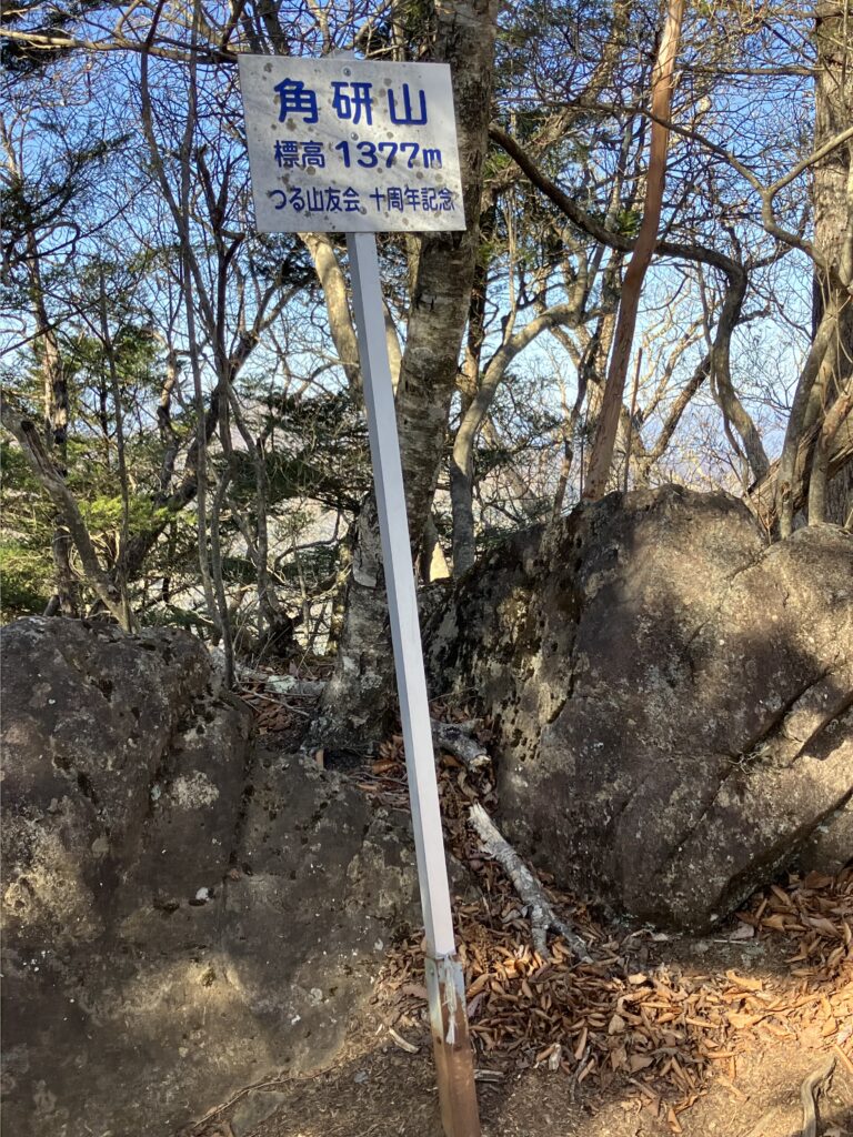 庭洞山、角研山、石切山を過ぎて行きます。日差しは暖かで、風もたまに吹く程度、心配していた雪も登山道にはほとんど無く、絶好の陽だまりハイク。