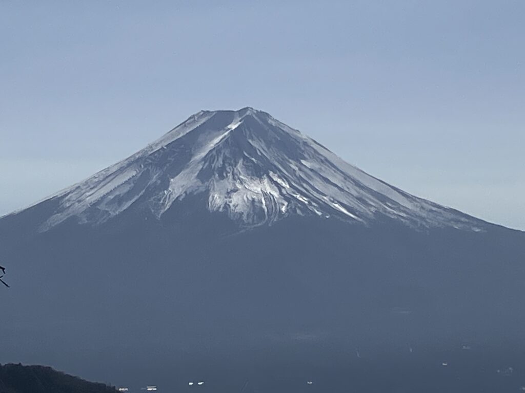 清八峠の分岐から6分で清八山に到着。視界が開けたかと思うと正面に富士山がドーンと現れました。遠くに雪山が見えますが、二人共「あの山はどこだろうねー」で終わってしまう情けなさ...