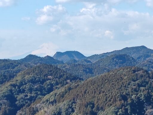 烏場山からは房総の山々の展望が開け、伊予ヶ岳(房総のマッターホルン)の先にはうっすらと富士山も見えていました(わかりますか?)。