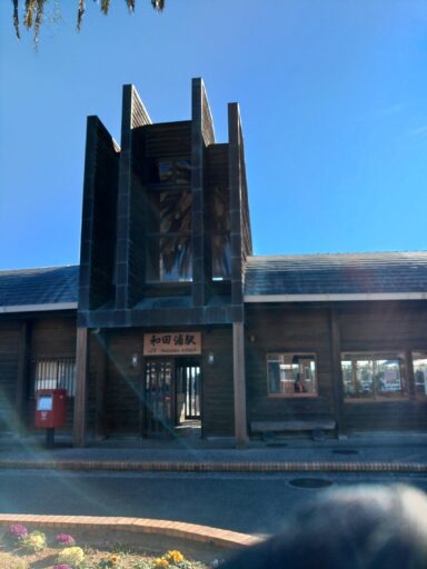 下りはアップダウンのある尾根道の花婿コース。時間があれば駅近くの道の駅に寄って鰺フライを買おうと話していましたが、今までのペースでは無理そうでした。そこでA元さんが皆の分を買うため見晴台で別れ一人急いで下ることにしました。A元さんとは和田浦駅で合流。鰺フライは持ち帰りができなかったものの、鯨コロッケや各種のつまみ、アルコールを大量に調達。早速、待合室で乾杯。