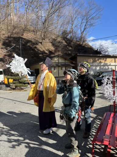 中ノ嶽神社に戻ると、宮司さんが声を掛けてくださり、法螺貝を吹いて、妙義の山々について解説下さいました。
