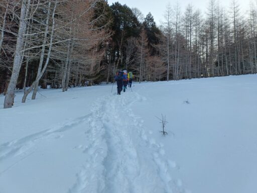 せっかくロープやハーネスを持参したので、社山に入って雪のアルパイン練習だあ‼️(山行部にはきちんと届けました)