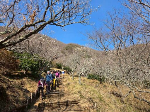 里山ハイキング、梅林鑑賞、温泉、宴会と