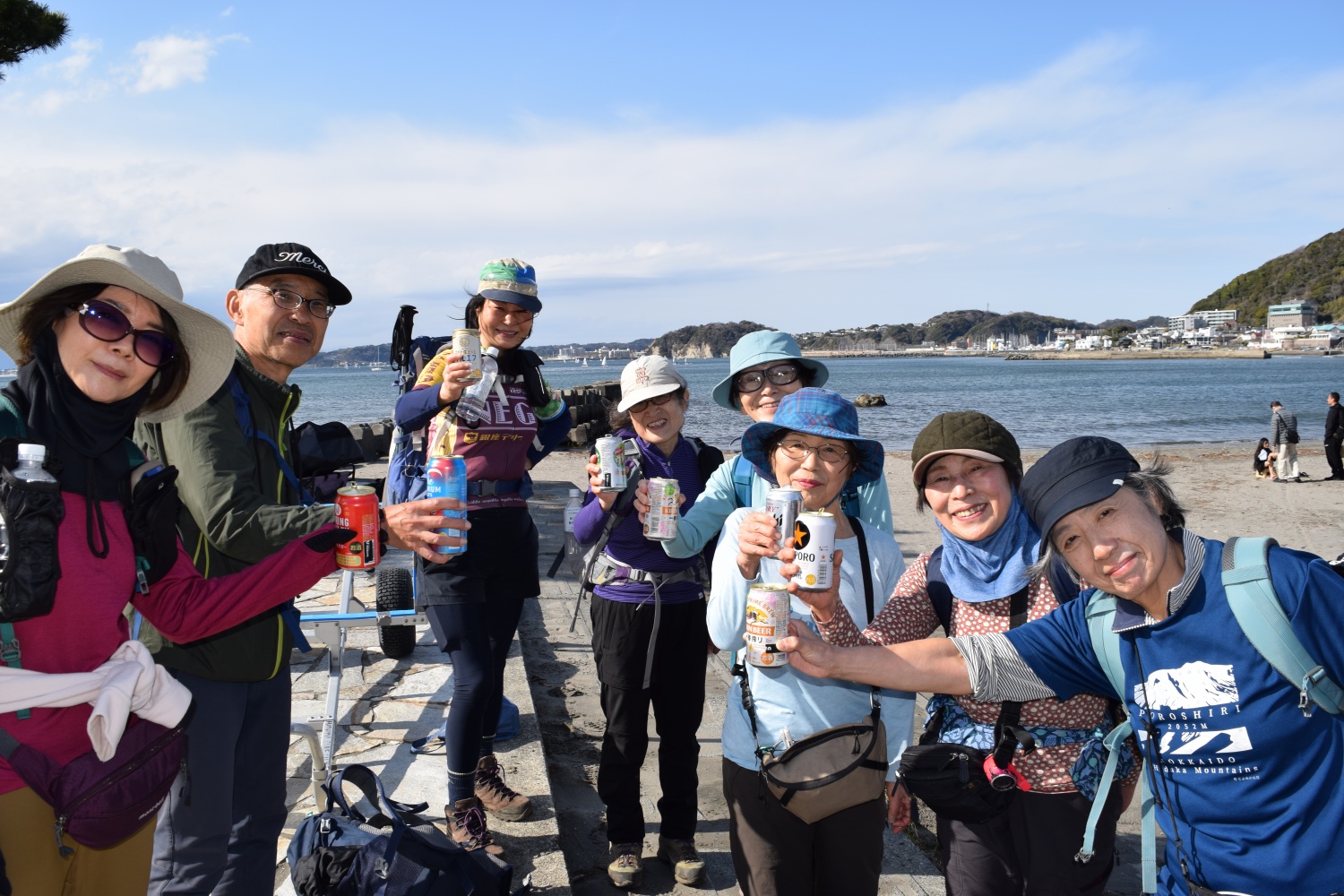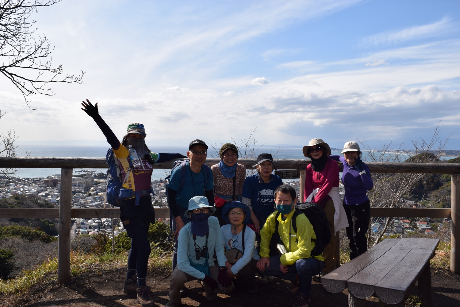 JR田浦駅7:40発-田浦緑地展望台9:20-矢落山10:00-高塚12:00/12:30-観音塚12:40-ソッカ13:10-仙元山13:50-森戸海岸14:30着