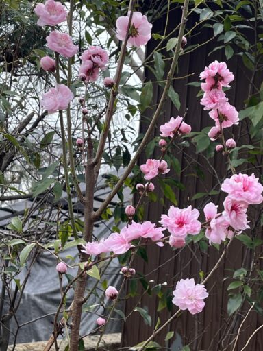 庭の花桃はほぼ満開 本日の桃源郷を期待して