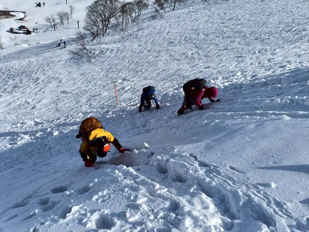 帰路はキツイ斜面でキックステップやダガーポジションを練習