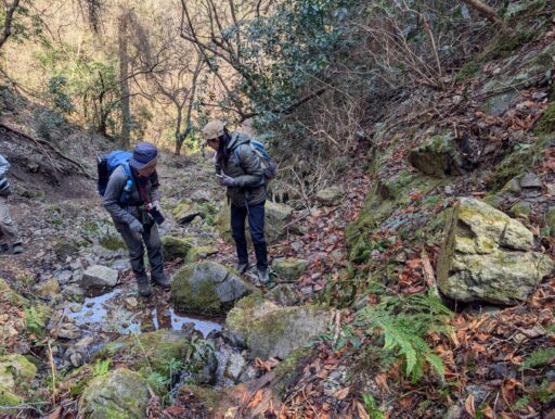 小下沢林道に入るとすぐに小下沢に人がいたので聞いてみると、ハナネコノメソウがあるみたいで早速私達も沢に下りてみます。