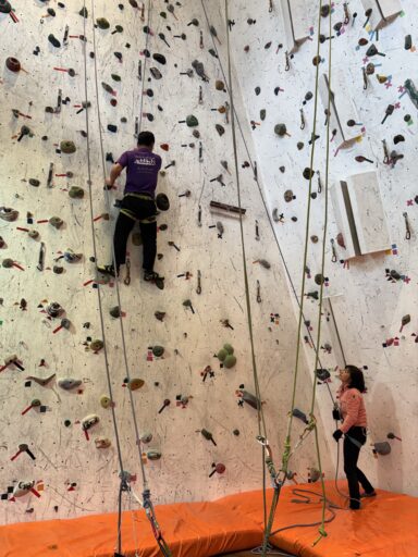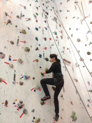 言われボルダリングのウォールを初体験。