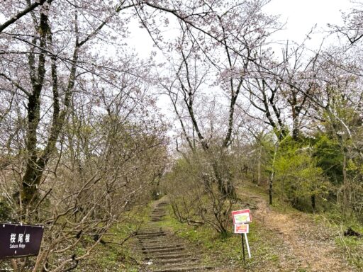 桜尾根を登っていきます。桜はきれいに咲いていますが曇り空なのでいまいち映えないのが残念です。