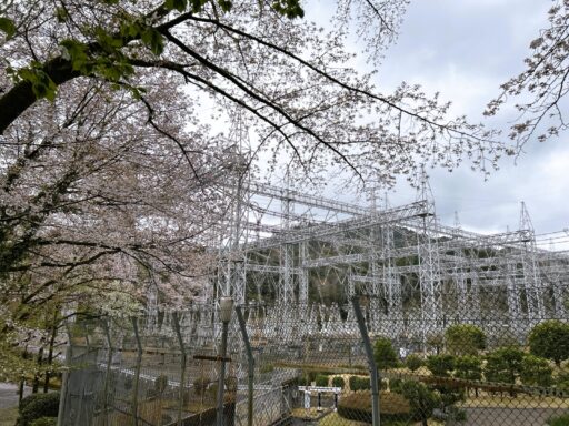 東京電力新多摩変電所と桜、この周りに鉄塔が多いはずです