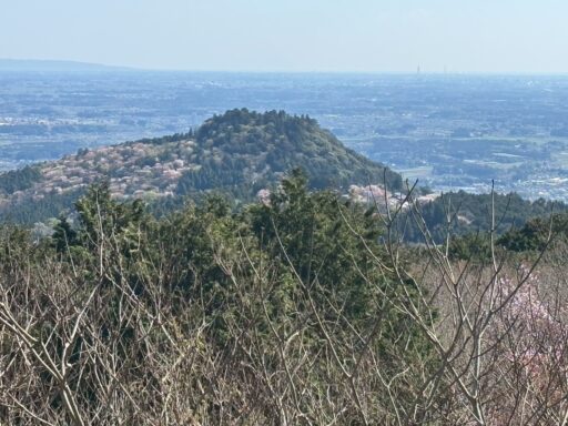 山頂(553m)から見た、筑波山と裏筑波の山並み