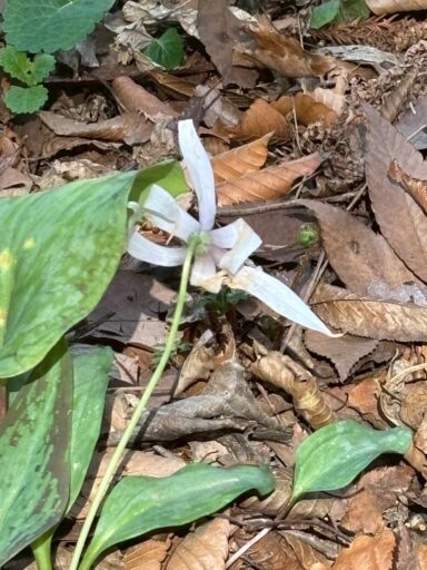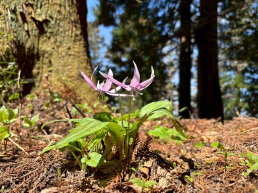 カタクリがあちこちに薄い紫の可憐な花を咲かせています。