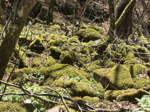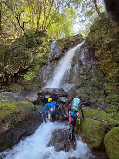 沢沿いの木陰で一呼吸。苔が輝いています。暑さに慣れていないこの時期、喉が渇く前に水分をと、度々水分補給を促すS内リーダー。流石です‼️